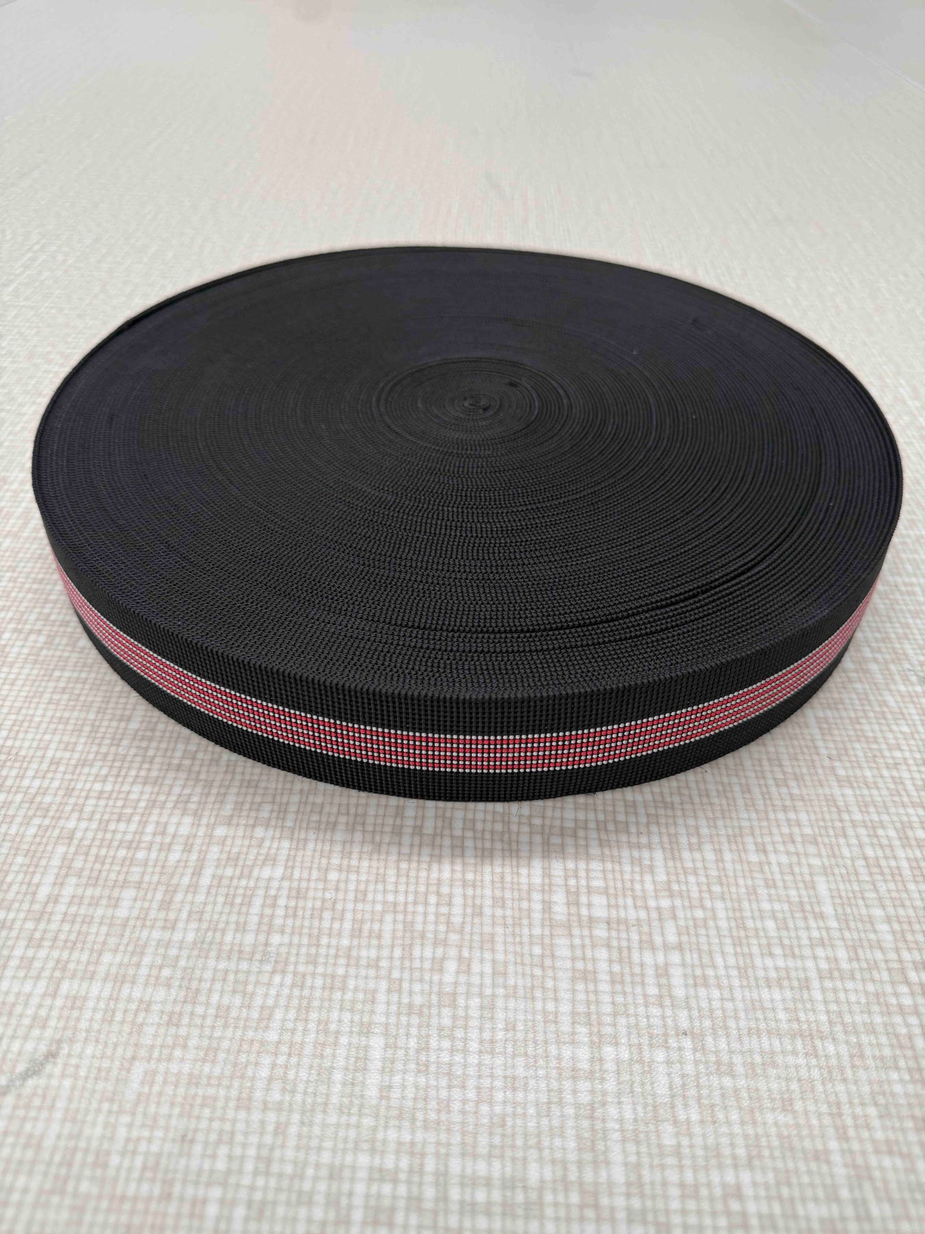 Premium Furniture Elastic Webbing (450) 50mm Wide, 50M Roll - Durable Black/Red Stretchy Support